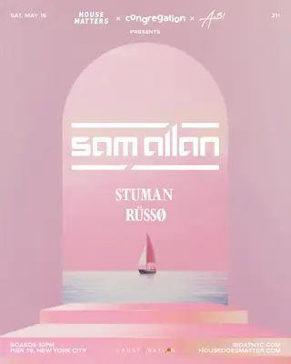 House Matters: Congregation Boat Party Season Opening Series with Sam Allan Top Organizer on May 16, 2026 at Pier 78 at Hudson River Park, New York City features electronic music performances pop DJ sets.