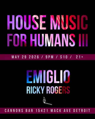 House Music for Humans Vol III takes place at Cannons in Detroit, United States on May 29, 2026. House sounds all night.