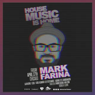 House Music is Home. Mark Farina, Chosen Fews Alan King, LEGO and More on April 17, 2026 at Sound-Bar, Chicago features Mark Farina, LEGO, Karl Almaria, Geto Mark, Adorio and iamBrandon performing house DJ sets.