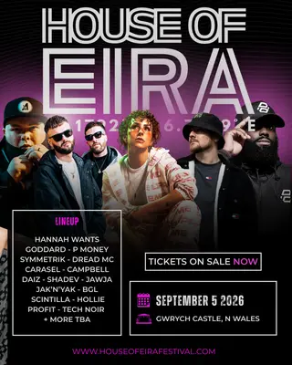 House Of Eira on September 5, 2026 at Gwrych Castle, West + Wales features Redlight, Carasel, DAIZ and Holly Profit performing drum & bass DJ sets.