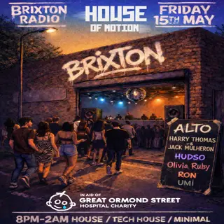 House Of Motion in aid of Great Ormond Street Hospital Charity takes place at Brixton Radio in London, United Kingdom on May 15, 2026. Featuring ALTO (UK). Tech House and Minimal sounds all night.