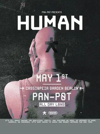 HUMAN Mayday with Pan-Pot All Day Long takes place at Cassiopeia in Berlin, Germany on May 1, 2026. Featuring Pan-Pot. Techno and House sounds all night.