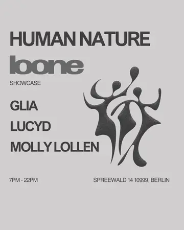 Human Nature: GLIA Invites: Lucyd, Molly Lollen takes place at Loone in Berlin, Germany on Wednesday, February 25, 2026. Featuring GLIA, Lucyd, Molly Lollen. Techno.