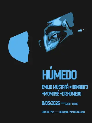 Húmedo on May 8, 2026 at Garage 442, Barcelona features Hanakito, Emilio Mustafá, Momasé and Dr Humedo performing house DJ sets.