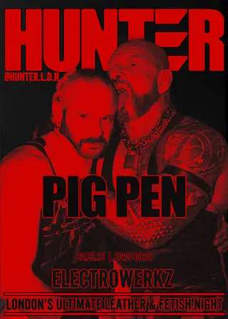 HUNTER: PIG PEN takes place at Electrowerkz in London, United Kingdom on March 20, 2026. House and Industrial sounds all night.