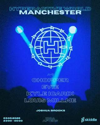Hyperactive World | Manchester | After Party on May 3, 2026 at Joshua Brooks, Manchester features electronic music performances house DJ sets.