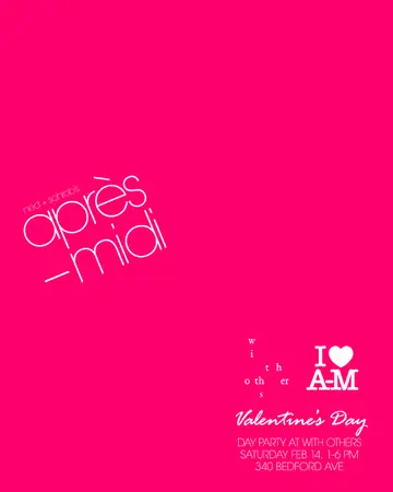 i <3 après-midi takes place at With Others in New York, United States on Saturday, February 14, 2026. Featuring Sohrob.