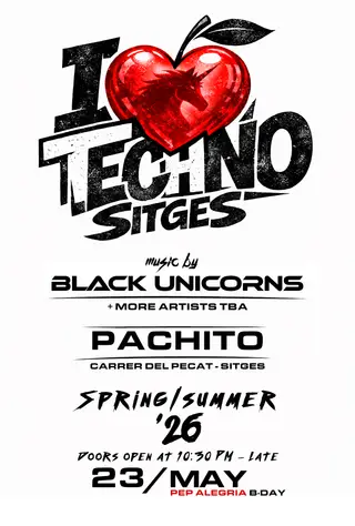I LOVE TECHNO by Black Uniconrs on May 23, 2026 at Pachito Sitges, Barcelona features electronic music performances techno DJ sets.