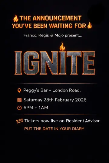 IGNITE takes place at Peggy Sues Music Bar in London, United Kingdom on Saturday, February 28, 2026. Featuring Lucid Paradox. Progressive House, Techno.