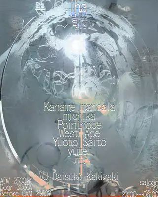 ihaइह vol.2 on May 22, 2026 at Saloon, Tokyo features Yuoto Saito, Pointhope, michika, Kanamemandala and West Ape performing techno DJ sets.