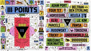III Points 2026 on October 16, 2026 at Mana Wynwood, Miami features Adam Port, Beltran, Ben Sterling, Four Tet, horsegiirL, Kelela, KI/KI, PAWSA, Tokischa, Tricky, Underworld, ¥ØU$UK€ ¥UK1MAT$U and 999999999 performing techno DJ sets.