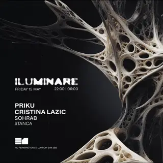 ILUMINARE present Priku, Cristina Lazic & Sohrab takes place at E1 in London, United Kingdom on May 15, 2026. Featuring Priku, Cristina Lazic, sohrab.. Tech House and Minimal Techno sounds all night.