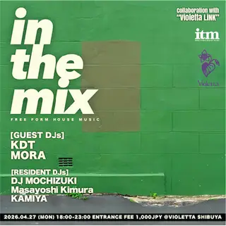 in the mix -FREE FORM HOUSE MUSIC- Collaboration with 'Violetta LiNK' on April 27, 2026 at Violetta, Tokyo features KDT, MORA (FI), DJ MOCHIZUKI, Masayoshi Kimura and KAMIYA. performing house DJ sets.