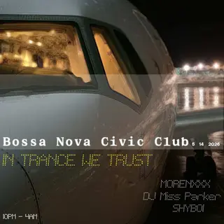IN TRANCE WE TRUST with MORENXXX + DJ Miss Parker + Shyboi on May 14, 2026 at Bossa Nova Civic Club, New York City features MORENXXX, Miss Parker and Shyboi performing trance DJ sets.