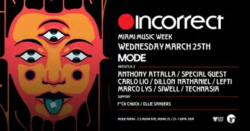 Incorrect Music MMW Showcase takes place at MODE Downtown Miami in Miami, United States on Wednesday, March 25, 2026. Featuring Anthony Attalla, Carlo Lio, LEFTI, Marco Lys and 2 more. Techno, Tech House.