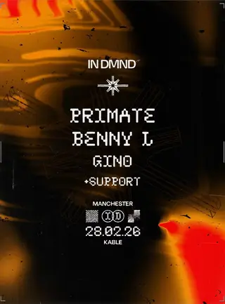 INDMND: Primate, Benny L, Gino + Support on February 21, 2026 at Kable Club, Manchester features Benny L performing drum & bass DJ sets.