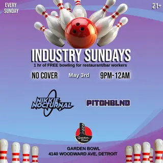 Industry Sundays takes place at Garden Bowl in Detroit, United States on May 3, 2026. House and Tech House sounds all night.