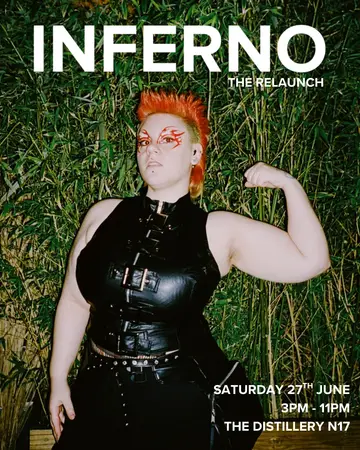 INFERNO: The Relaunch takes place at Distillery N17 in London, United Kingdom on Saturday, June 27, 2026. Techno, Hardcore.