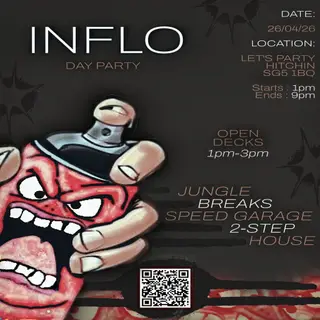 Inflo - Day Party takes place at TBA - Lets Party in Liverpool, United Kingdom on April 26, 2026. House and Jungle sounds all night.