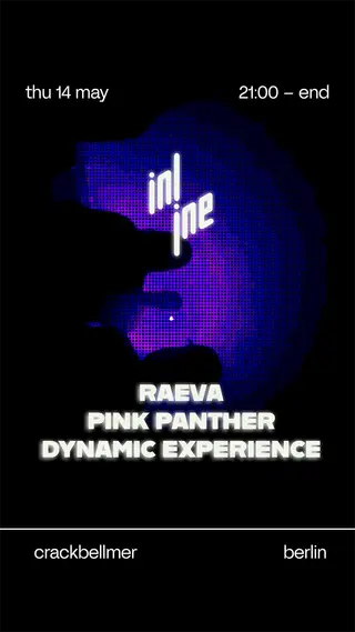Inline with Raeva, Dynamic Experience & Pink Panther takes place at Crack Bellmer in Berlin, Germany on May 14, 2026. Featuring Raeva, Dynamic Experience, pink-panther. Techno and Tech House sounds all night.