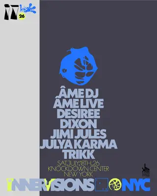 Innervisions New York on July 18, 2026 at Knockdown Center, New York features Âme, DESIREE (RSA), Dixon, Jimi Jules, Julya Karma and Trikk performing techno DJ sets.