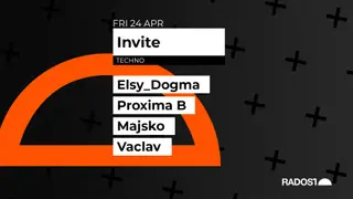INVITE w. Elsy_Dogma - Proxima B - Majsko - Vaclav takes place at Radost Music Club in Bratislava, Slovakia, on April 24, 2026. The event features a lineup of techno artists including Elsy_Dogma, known for her intricate sound design and energetic performances, and Proxima B, who hails from the local scene and is recognized for his driving beats. Majsko, also part of the lineup, is noted for his atmospheric take on techno and has been active in the genre for several years. Vaclav rounds out the event with his signature blend of deep and melodic techno, contributing to the diverse sound of the night. The event promises to showcase a range of styles within the techno genre.