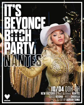 It's Beyoncé Bitch Party Nantes avec Keiona takes place at New Factory in Nantes on April 10, 2026. Pop.