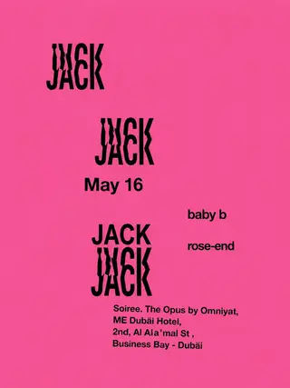 JACK on May 16, 2026 at TBA - Soiree restaurant and lounge, Dubai features Baby B. and Rose-End performing garage DJ sets.