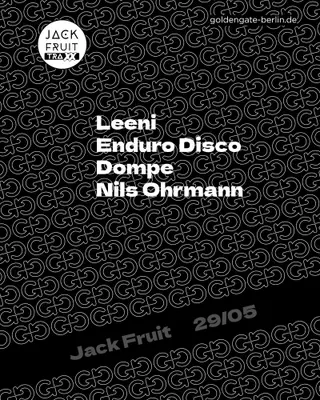 Jack Fruit on May 29, 2026 at Golden Gate, Berlin features LEENI, ENDURO DISCO, Dompe and Nils Ohrmann performing DJ sets.