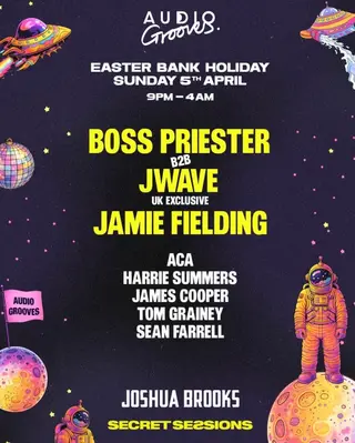JBs Easter Sunday Session w/ Jamie Fielding, jWave B2B Boss Priester + more on April 5, 2026 at Joshua Brooks, Manchester features Jamie Fielding, jWave, Boss Priester, ACA (YU), HARRIE SUMMERS and James Cooper (UK) performing house DJ sets.