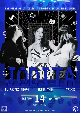 Jodita Techno x Under Bridge on March 14, 2026 at Under Bridge Madrid, Madrid features Brisa Then and TRIXXI performing DJ sets.
