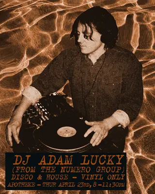 Just Like That with DJ Adam Lucky (Numero Group) on April 23, 2026 at Apotheke, Los Angeles features electronic music performances house DJ sets.