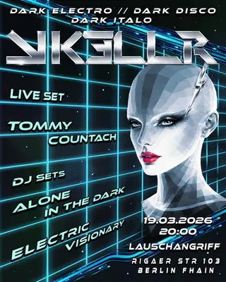 K3LLR takes place at Lauschangriff in Berlin, Germany on March 19, 2026. Featuring Electric Visionary. Electro and New Wave sounds all night.