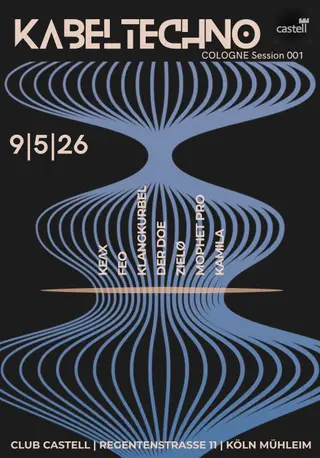 KABELTECHNO - COLOGNE Session 001 takes place at TBA in Cologne, Germany on May 9, 2026. Techno and Minimal Techno sounds all night.