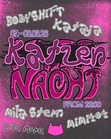 Katzen*nacht with Kataya, MIMI404, BODYSHIFT, Mila Stern takes place at Kater in Berlin, Germany on Saturday, March 7, 2026. Featuring BODYSHIFT, Mila Stern, Kataya, MIMI404 and 3 more. Techno, House.