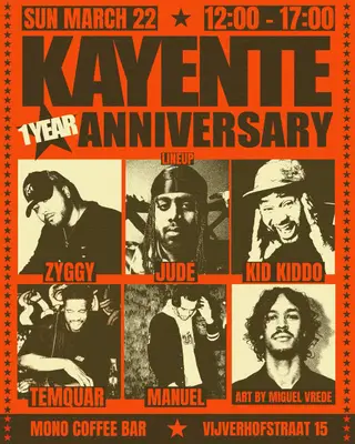 Kayente 1year Anniversary takes place at Mono in Rotterdam, Netherlands on March 22, 2026. Reggaeton, Neo Perreo.