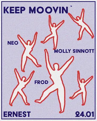 Keep Moovin' at Ernest on January 24, 2026 at Ernest, Manchester features FroD, Neo (8) and Molly Sinnott performing DJ sets.