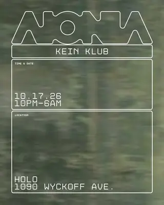 KEIN KLUB takes place at H0L0 in New York City, United States on October 17, 2026. Featuring Intergalactic Gary, Amelia Holt. Techno and EBM sounds all night.