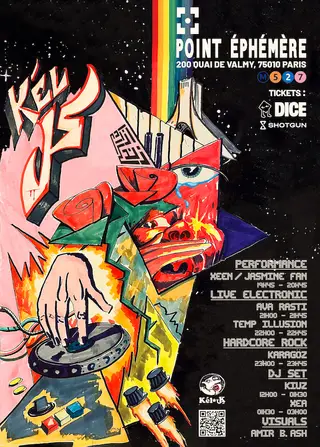 Kel Collectif takes place at Point Ephémère in Paris, France on April 25, 2026. Featuring Kiuz, xea (1). Experimental and Post-Punk sounds all night.