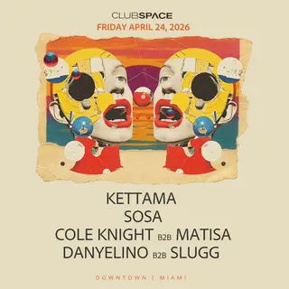 KETTAMA, Sosa & Cole Knight B2B Matisa on April 24, 2026 at Club Space Miami, Miami features KETTAMA, Sosa, Cole Knight, Matisa, Danyelino and slugg performing DJ sets.