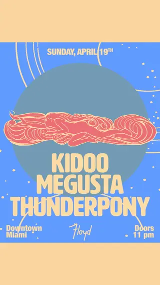 Kidoo and MEGUSTA headline Kidoo at Floyd, Miami, United States on April 19, 2026. Featuring Kidoo, MEGUSTA, Thunderpony. Expect Tech House and Minimal throughout the night.