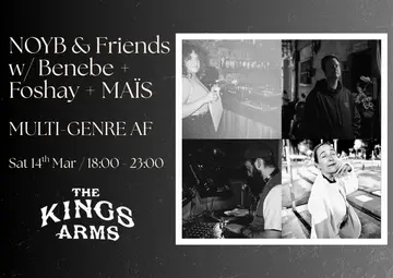 Kings Turntable: NOYB & Friends [14.03.2026] takes place at Kings Arms E2 in London, United Kingdom on Saturday, March 14, 2026. Featuring Benebe, Foshay, MAÏS. Balearic.