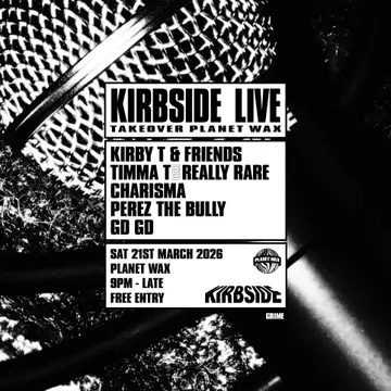 KIRBSIDE LIVE takes place at Planet Wax in London, United Kingdom on Saturday, March 21, 2026. Grime.
