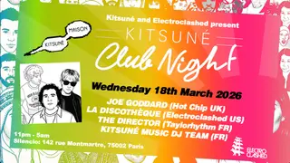 KITSUNE x ELECTROCLASHED: Joe Goddard & FRIENDS 2026 takes place at the renowned Silencio in Paris, France on Wednesday, March 18, 2026, featuring Joe Goddard and The Director. This event brings together artists and fans who share a passion for dance music culture and House, Electro sounds.