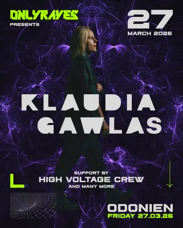 Klaudia Gawlas + High Voltage Showcase pres. by ONLYRAVES takes place at Odonien in Cologne, Germany on Friday, March 27, 2026. Featuring Klaudia Gawlas. Trance, Techno.