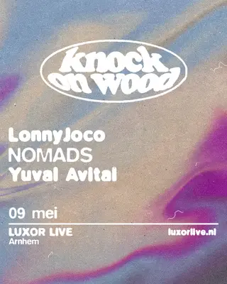Knock on Wood takes place at Luxor Live in All, Netherlands, on May 9, 2026. This event features house and disco music. The lineup includes Nomads, known for their infectious grooves and energetic performances, and LonnyJoco, who brings a unique blend of house rhythms and disco influences. Both artists are recognized for their contributions to the genre and their ability to engage audiences with their distinct styles.