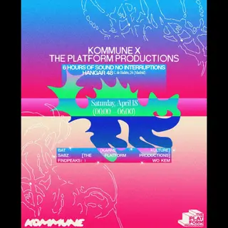 KOMMUNE X THE PLATFORM PRODUCTIONS takes place at Hangar48 Club in Madrid, Spain on April 18, 2026. Featuring Bat (US), findPeaks, KARNE KULTURE, WO KEM. Tech House sounds all night.