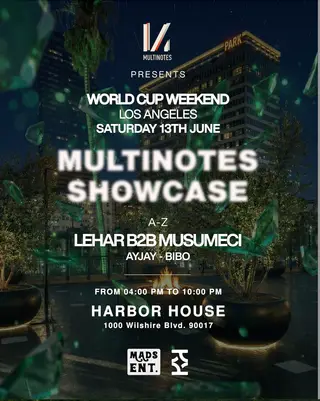 Koncept presents: Multinotes Showcase w/ Lehar & Musumeci - World Cup Special at Harbor House DTLA in Los Angeles, United States on June 13, 2026. Featuring Lehar, Musumeci. Techno and House sounds all night.