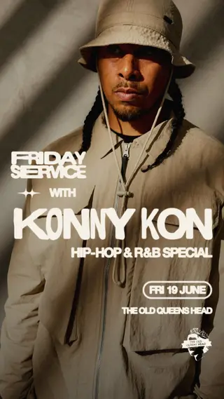 Konny Kon [Children of Zeus] DJ Set: Hip-Hop & R&B Special takes place at The Old Queens Head in London, United Kingdom on June 19, 2026. Hip-Hop and R&B sounds all night.