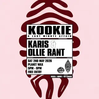 KOOKIE: A LAST MINUTE AFFAIR on May 2, 2026 at Planet Wax, London features Karis. and Ollie Rant performing house DJ sets.